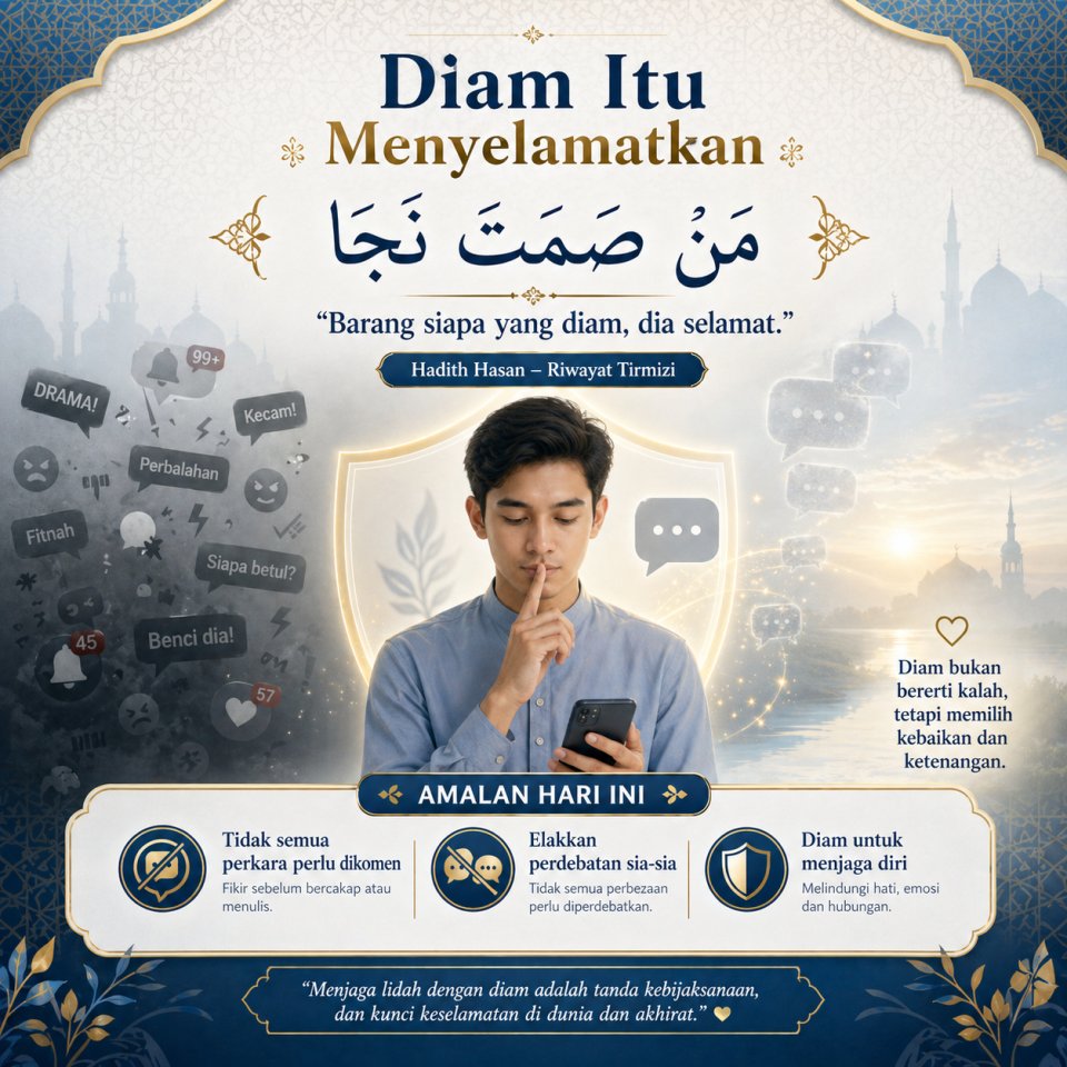 Dalam dunia digital yang penuh dengan maklumat dan reaksi segera, sikap diam sering kali menjadi pilihan yang lebih selamat dan bijaksana: