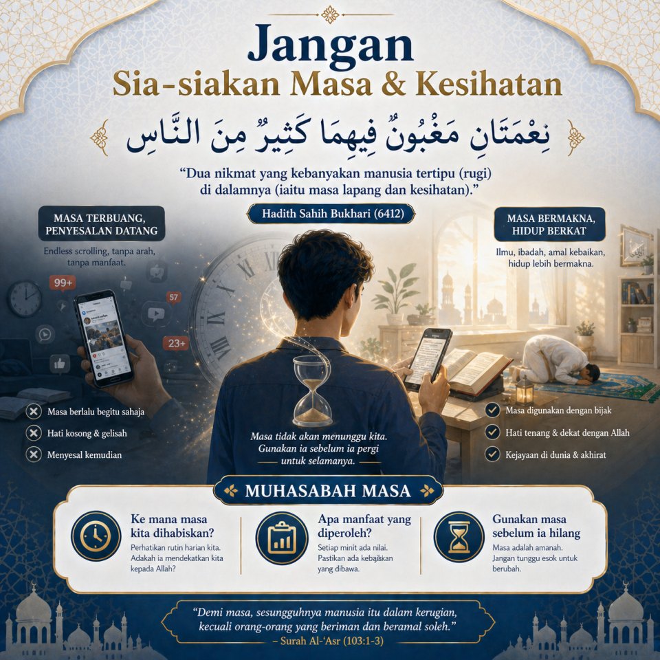 “Dua nikmat yang ramai manusia kerugian dalamnya: kesihatan dan masa lapang.”