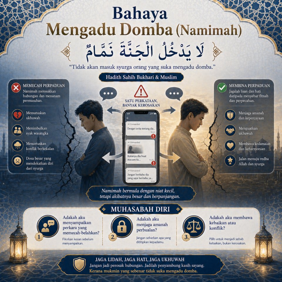 Mengadu domba (namimah) merupakan dosa besar yang boleh menghalang seseorang daripada masuk syurga