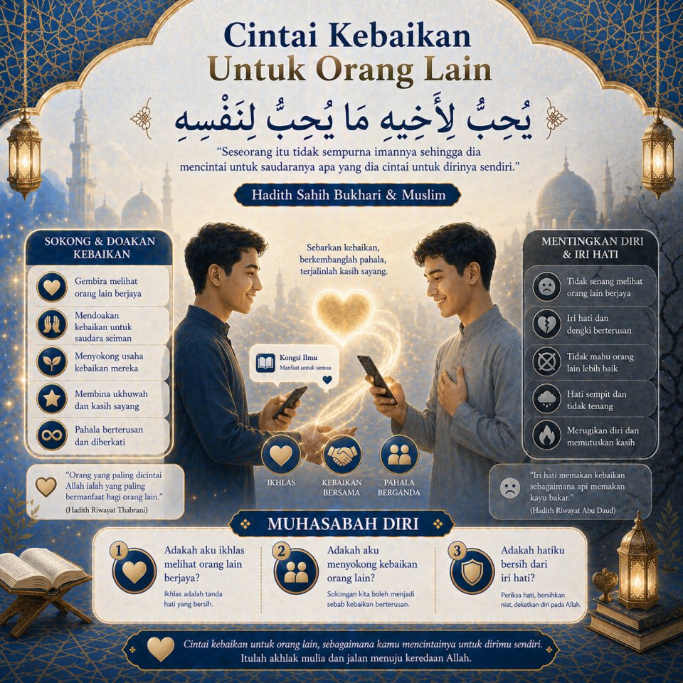 Sikap ingin melihat orang lain turut berjaya dan memperoleh kebaikan merupakan tanda iman yang matang. Dalam dunia yang sering mendorong perbandingan, kita perlu kembali kepada prinsip Islam yang menekankan kasih sayang, sokongan dan keikhlasan sesama manusia.