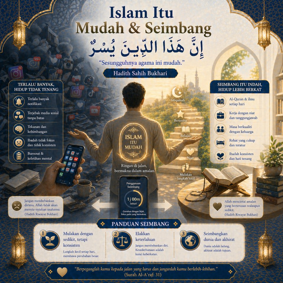 Islam adalah agama yang memudahkan, bukan menyusahkan. Dengan pendekatan yang sederhana dan konsisten, seseorang dapat membina amalan yang kukuh serta berpanjangan tanpa merasa terbeban.