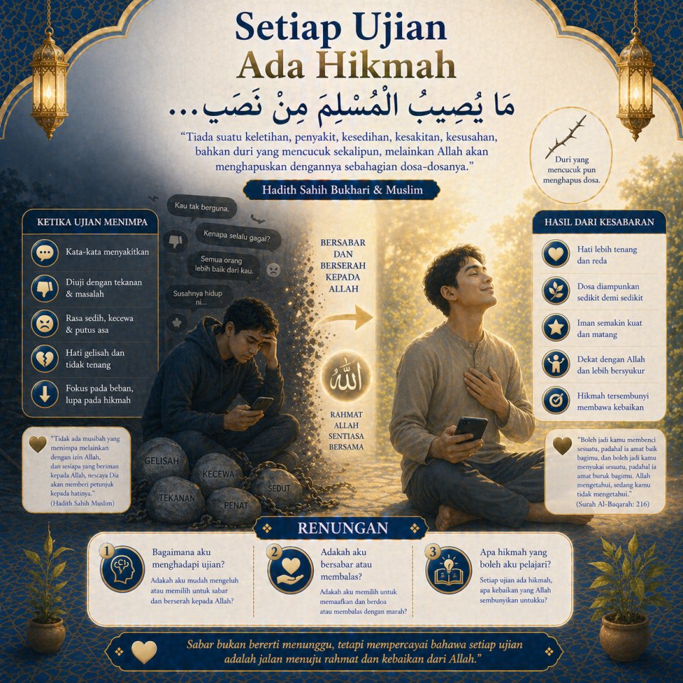Setiap kesusahan yang dialami bukanlah tanda kelemahan, tetapi peluang untuk mendekatkan diri kepada Allah SWT. Dengan kesabaran dan keimanan, ujian akan menjadi jalan menuju keampunan dan ganjaran yang besar.