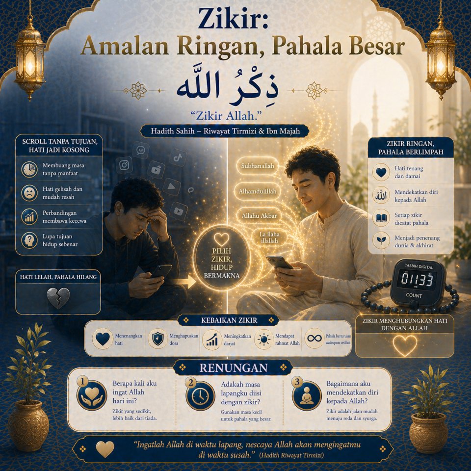 Dalam kehidupan digital yang sibuk, zikir boleh diintegrasikan dalam rutin harian dengan cara yang praktikal: