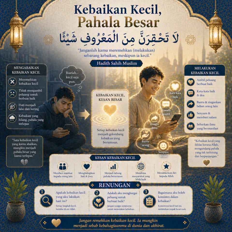 Tiada kebaikan yang terlalu kecil di sisi Allah SWT. Dengan kesedaran ini, setiap individu boleh menjadikan kehidupan seharian, termasuk dalam dunia digital, sebagai peluang untuk mengumpul pahala melalui amalan-amalan yang mudah tetapi bermakna.