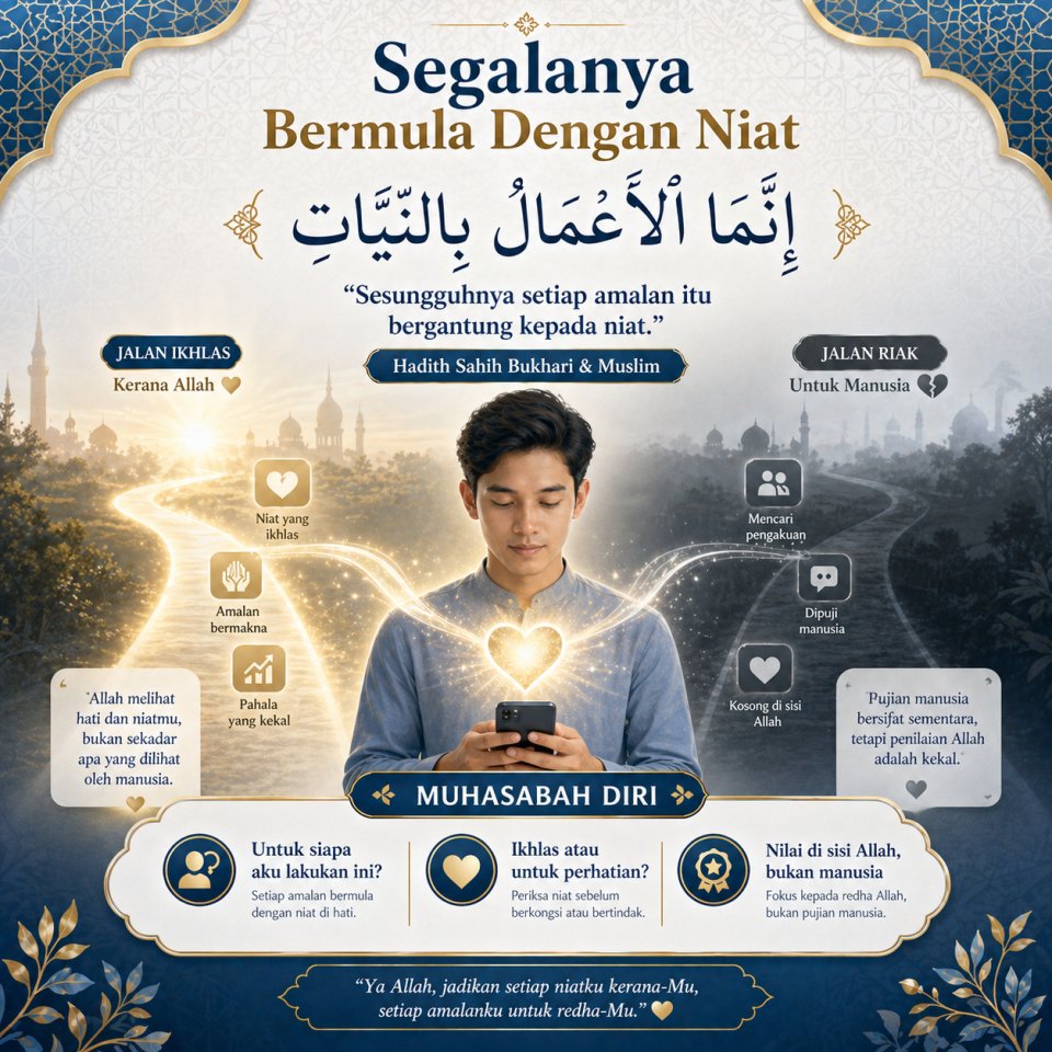 Dalam era media sosial dan dunia digital, persoalan niat menjadi semakin penting kerana banyak amalan dilakukan secara terbuka: